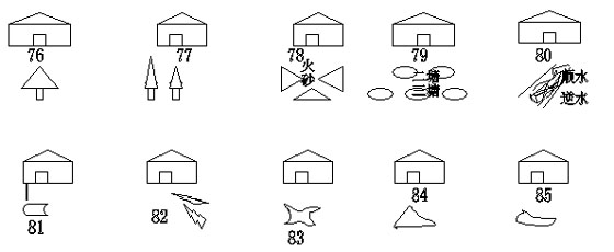 (78)阳宅(家居)地若是屋前有火砂(尖形山头)便是凶砂,左边的火砂会使兄长死,右边的火砂会令当弟弟的亡。正面火砂射来也同样要导致上述灾祸。
