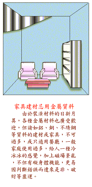 1. 家具建材忌用金属质料