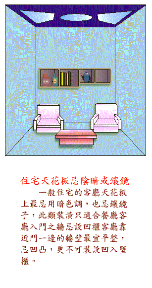 3. 住宅天花板忌阴暗或镶镜